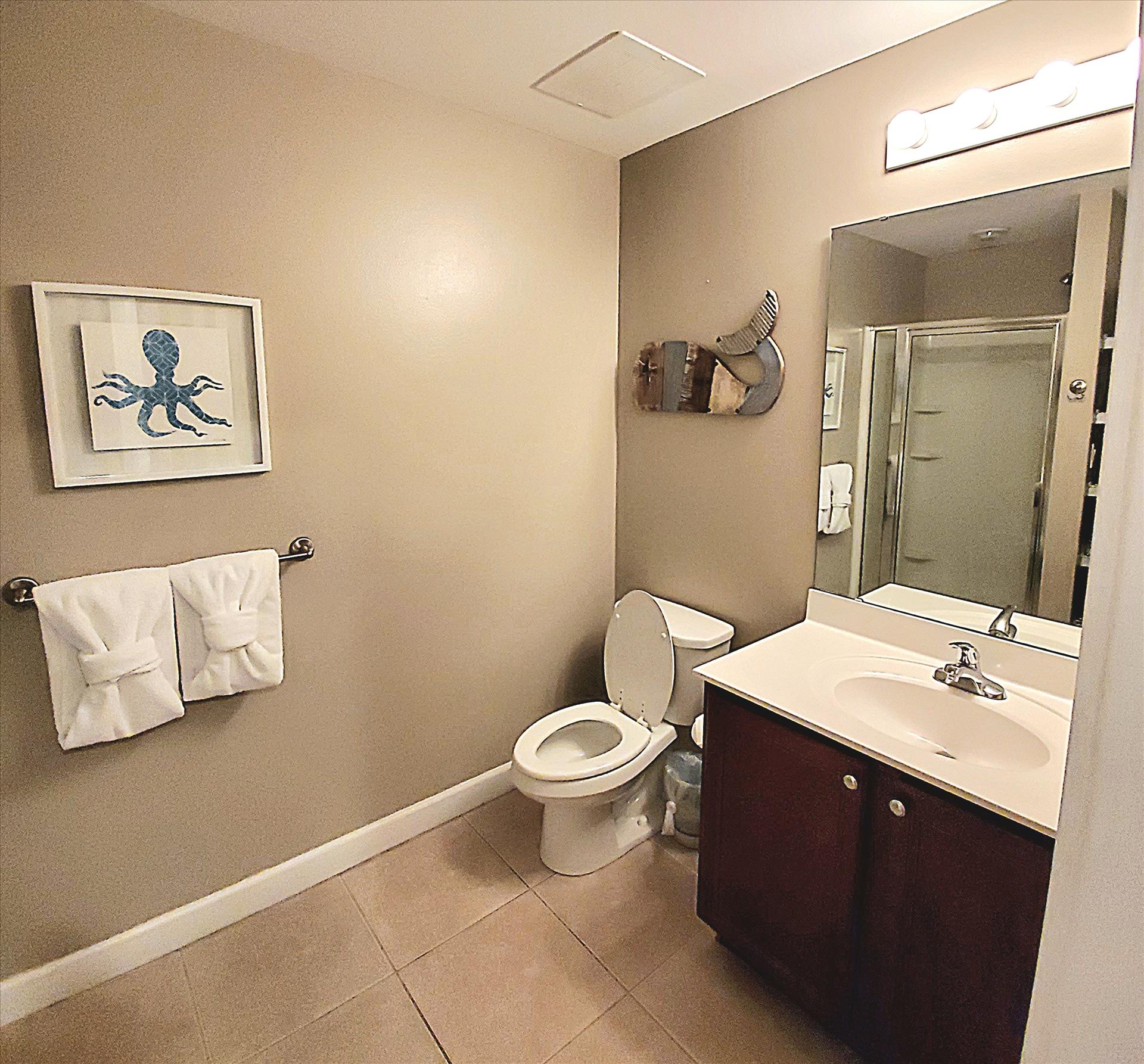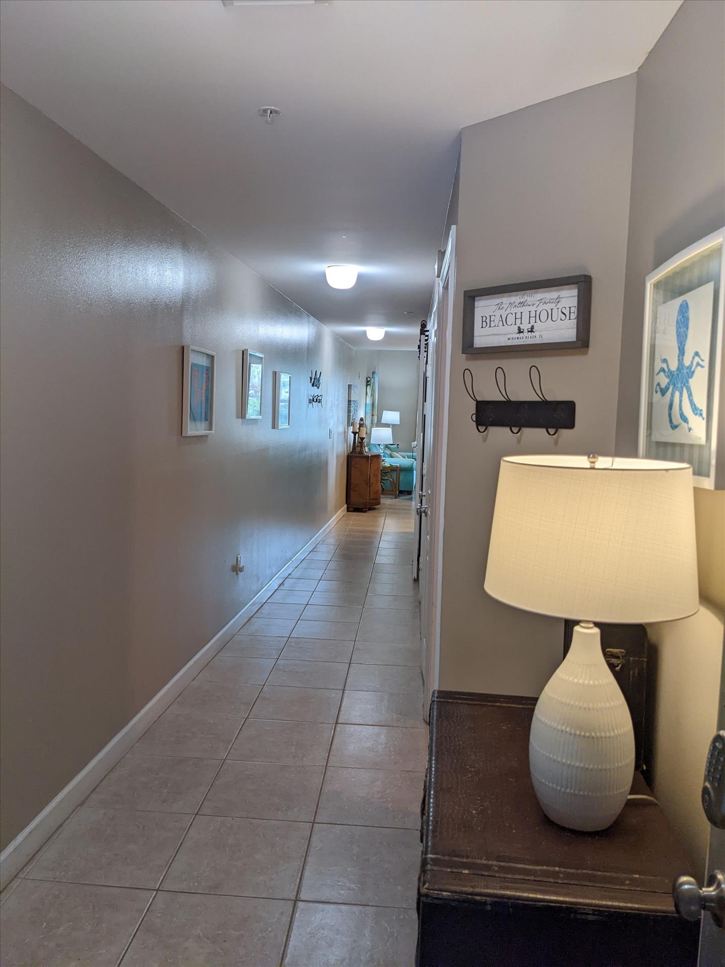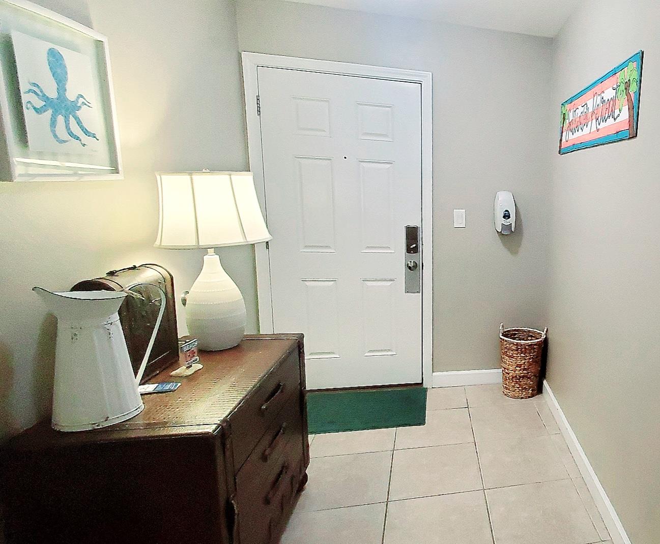 Additional amenities in the unit include a stackable washer and dryer, plenty of hooks and storage, an inviting entryway table with additional storage space, and games, cards, and books provided for your enjoyment in the living room entertainment cabinet. A beach cart and umbrella are stored in the laundry area, and three beach chairs are stored under the bunk beds that may be used in addition to the complimentary beach service for two provided from March 1st to October 31st. Please rinse, air dry, and return these items to the storage location if used.